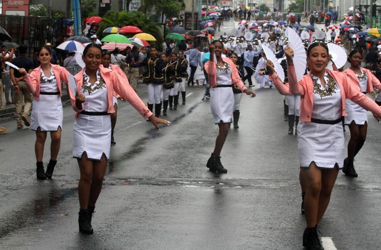 Una tenaz llovizna no opacó el inicio de los desfiles patrios a lo largo de la calle 50 y avenida Balboa, tras dos años de suspensión a causa de la pandemia del Covid-19.