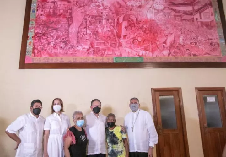 La develación de la tela mural estuvo a cargo del presidente Cortizo Cohen, la primera dama Yazmín Colón de Cortizo y monseñor José Domingo Ulloa.