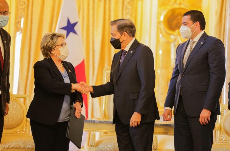El mandatario Laurentino Cortizo entregó ayer a la presidenta de la Corte Suprema de Justicia, María Eugenia López, la nota de compromiso para asignar B/.15 millones adicionales al Órgano Judicial para la implementación de la Carrera Judicial y una justicia eficaz, eficiente, independiente e imparcial.
