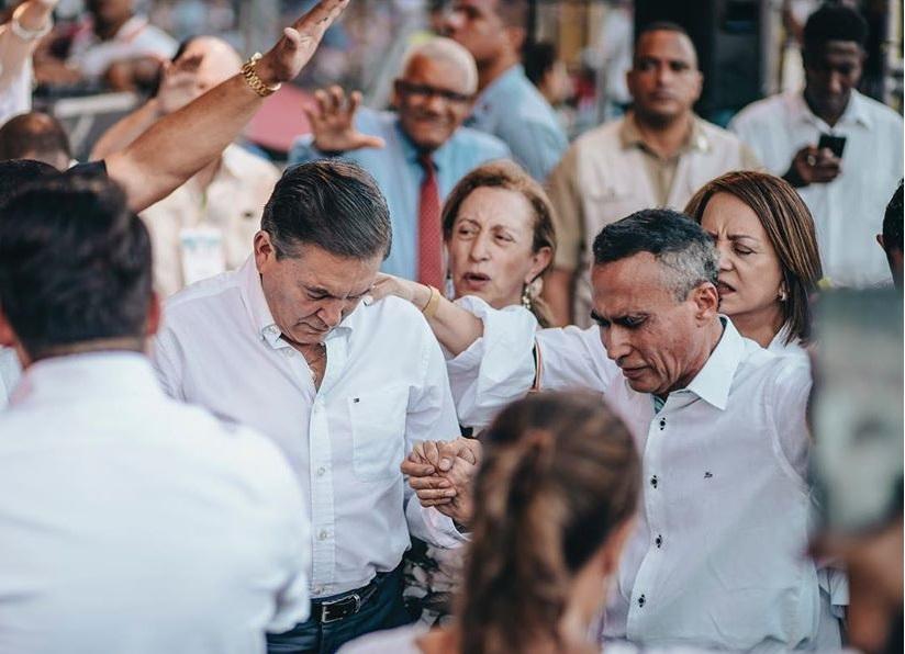 En una imagen publicada en el portal La Gaceta Panamá se observa a Cortizo con la cabeza baja mientras que el pastor Alvarez le coloca aceites, ante la mirada de miles de personas que acudieron al estadio Rommel Fernández a participar de un evento evangélico.