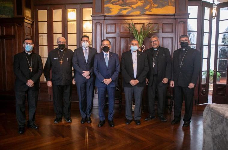 El presidente Laurentino Cortizose reunió ayer con miembros de la Conferencia Episcopal Panameña (CEP), durante un almuerzo en el Palacio Presidencial, para abordar los avances en materia de reactivación económica, educación, seguridad ciudadana, justicia, Pacto del Bicentenario Cerrando Brechas y sobre el proceso de vacunación contra Covid-19.
