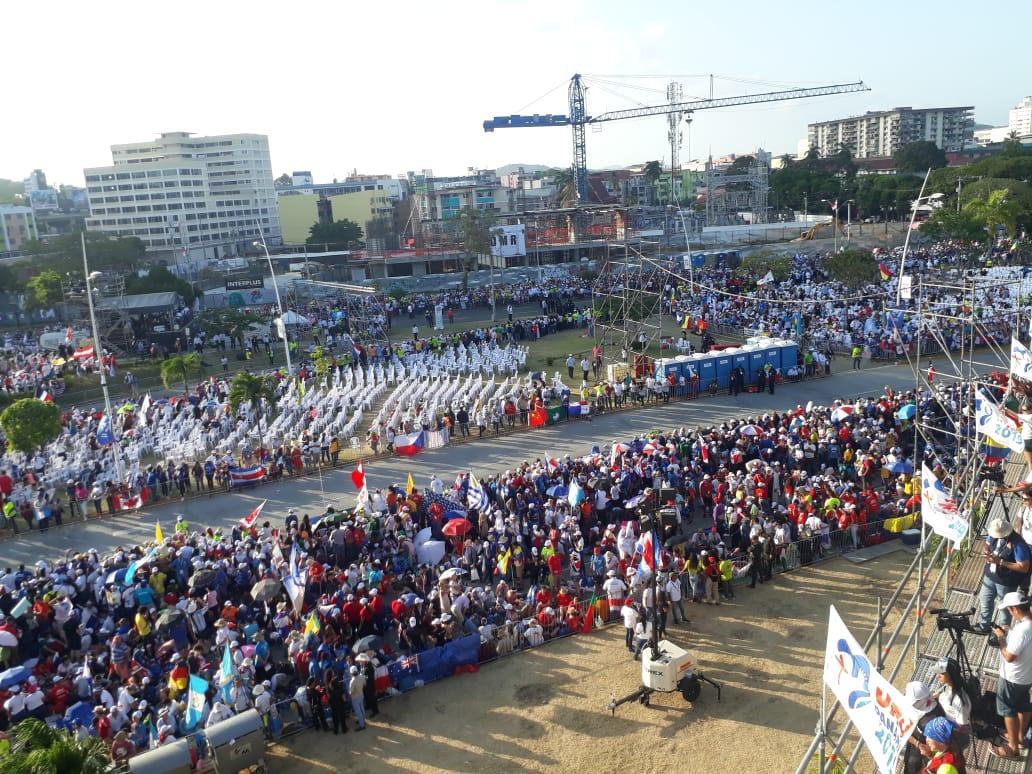 Miles de peregrinos que se protegían con gorras, sombreros y gafas oscuras del brillante sol panameño se congregaban en el paseo marítimo de la capital a la espera del sumo pontífice, y comentaban con entusiasmo a Acan-Efe qué le pedirían que dijera.