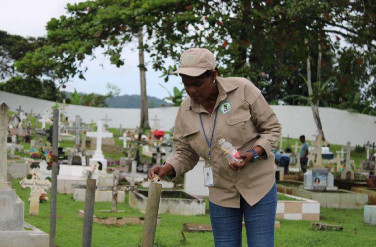 El personal de Control de Vectores del Ministerio de Salud mantiene inspección y fumigación contra los mosquitos en los cementerios de Monte Esperanza y otros de Colón; Parque del Recuerdo en Milla 8 y Cementerio Municipal en Chivo Chivo (San Miguelito) y de Panamá Norte: Calzada Larga en Caimitillo, Municipal de Chilibre (Agua Bendita), el de Agua Buena, Municipal de Alcalde Díaz y el de Praderas de la Paz.