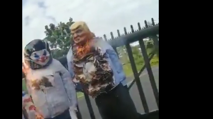 La protesta incluyó la quema de la bandera norteamericana y un muñeco que simbolizaba la figura del presidente Donald Trump.