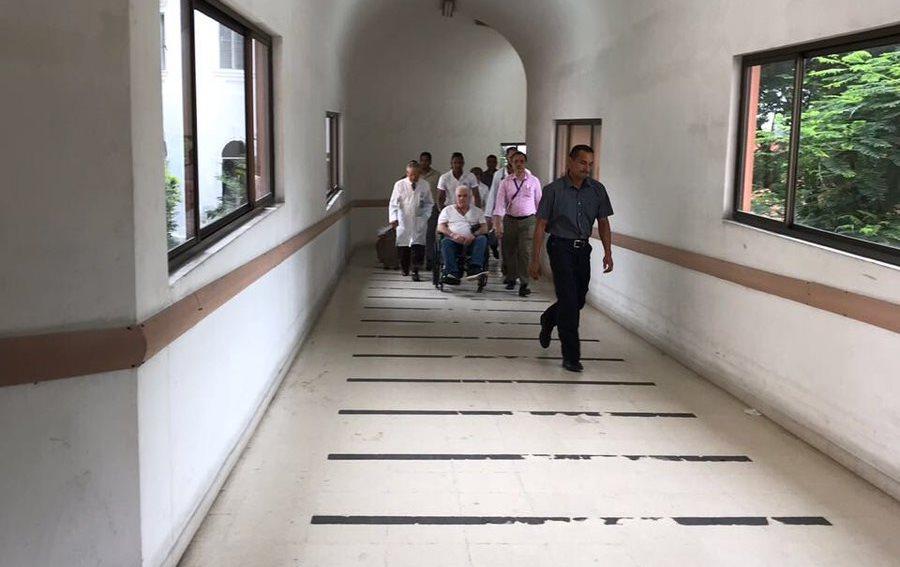 Un contingente de unidades de la Policía Nacional custodiaban el hospital, cuando Martinelli era llevado en una silla de ruedas.