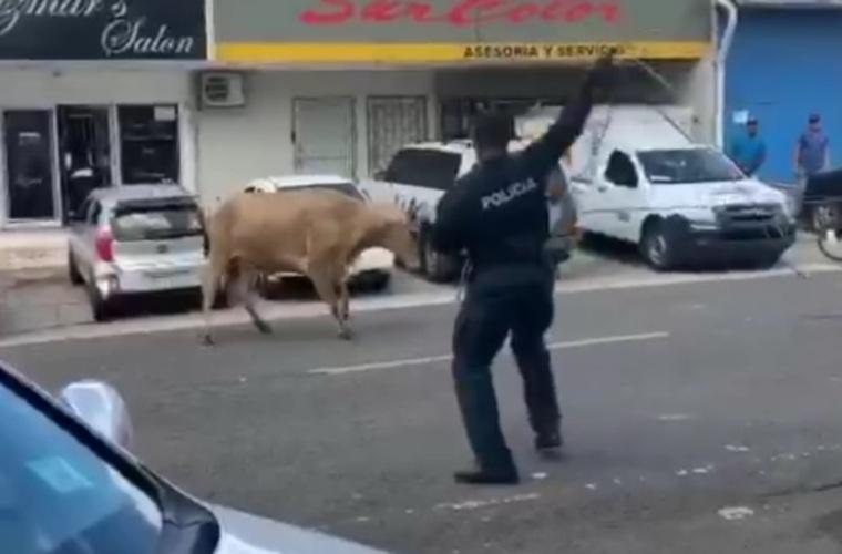 El centro de la ciudad de Chitré quedó alborotado ayer por la mañana, cuando de la nada apareció un toro joven en medio de una plaza comercial frente a la avenida Enrique Geenzier. Fue necesaria más de una hora de corredera, gritadera y alboroto para que al final más de 20 policías y un montón de voluntarios lazaran al novillo, como vaqueros primerizos en un rodeo.