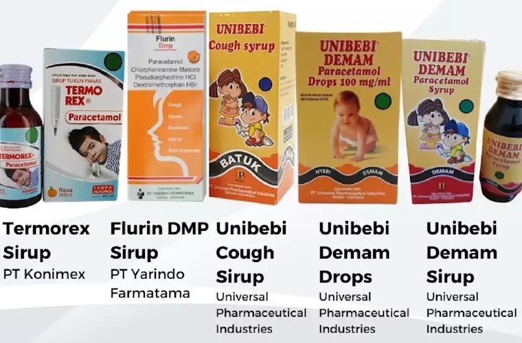 Los productos identificados en el comunicado de la OMS están el jarabe Termorex, el jarabe Flurin DMP, el jarabe para la tos Unibebi, las gotas de paracetamol Unibebi Demam, el jarabe de paracetamol Unibebi Demam, las gotas de paracetamol, el jarabe de paracetamol (menta) y el jarabe Vipcol.