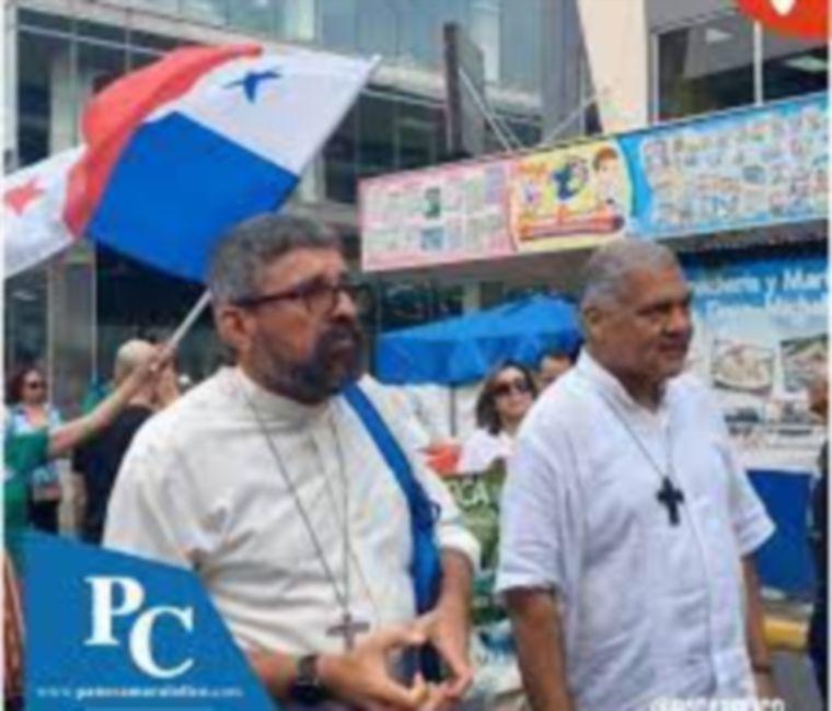 El presidente y el secretario general de la Conferencia Episcopal Panameño, Rafael Valdivieso y Manuel Ochogavia, respectivamente participaron el 19 de octubre en una de las primeras marchas que dieron origen a la ola de protestas contra el contrato de Minera Panamá.
