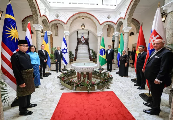 El presidente Mulino, en compañía del ministro de Relaciones Exteriores, Javier Martínez-Acha, dio la bienvenida, en sus respectivos turnos, a los embajadores extraordinarios y plenipotenciarios de Israel, Brasil, Suecia, Sudáfrica, Tailandia, Vietnam, Malasia y la República Eslovaca.