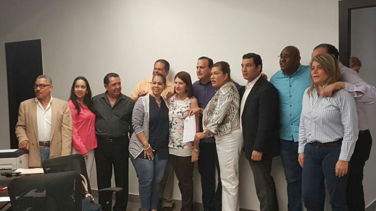 La documentación de la candidatura del expresidente Martinelli la presentó su esposa y exprimera dama, Marta de Martinelli, en compañía de Alma Cortés, presidenta encargada del partido Cambio Democrático; el precandidato presidencial, Riccardo Francolini y varios líderes del colectivo ante la Comisión Nacional de Elecciones.