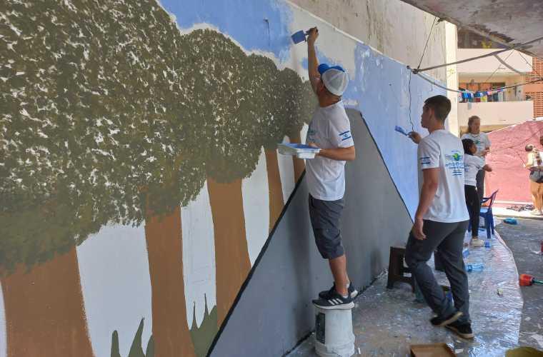 La cooperación inició en el Edificio San Ramón, ubicado en Calle M en San Miguel, Calidonia, donde realizarán trabajos de pintura, dibujos y colocación de mensajes inspiradores en conjunto con residentes del lugar.