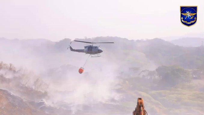 En una colaboración, las unidades del Servicio Aeronaval de Panamá y la Fuerza Aérea Colombiana se unieron para combatir un incendio que desde el relleno sanitario de Cerro Patacón ha estado afectando a la población de la capital panameña.