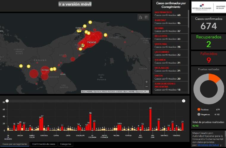 Las regiones más afectadas son Panamá Metro (50.7% casos); Panamá Oeste (17.1%), San Miguelito (11.6%), Panamá Norte (9.7%) y Veraguas (5.2%). Los corregimientos de San Francisco con 60 casos, Juan Díaz con 46 y Betania con 37 y Bella Vista 33, son los de mayor contagios.