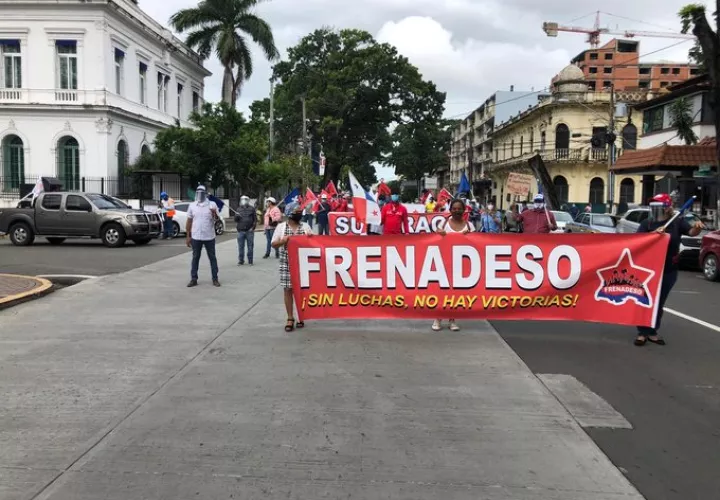 Organizaciones populares, sindicales y universitarios protestan en los alrededores de la Asamblea Nacional en medio del acto de apertura de un nuevo periodo legislativo y el informe que rendirá el presidente de la República, Laurentino Cortizo, sobre su primer año de gestión.