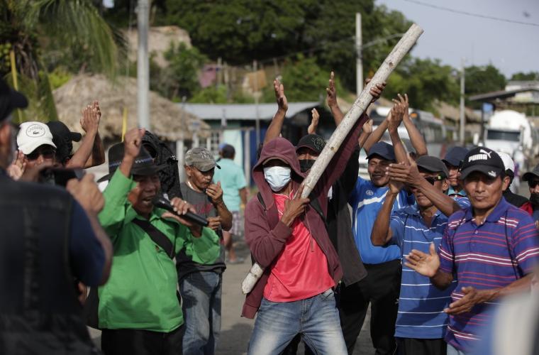 Uno de los bloqueos tuvo lugar en el puente sobre el Lago Bayano, donde un centenar de originarios ataviados con sus vestidos tradicionales gritaban consignas como "la tierra no se vende, la tierra se defiende".