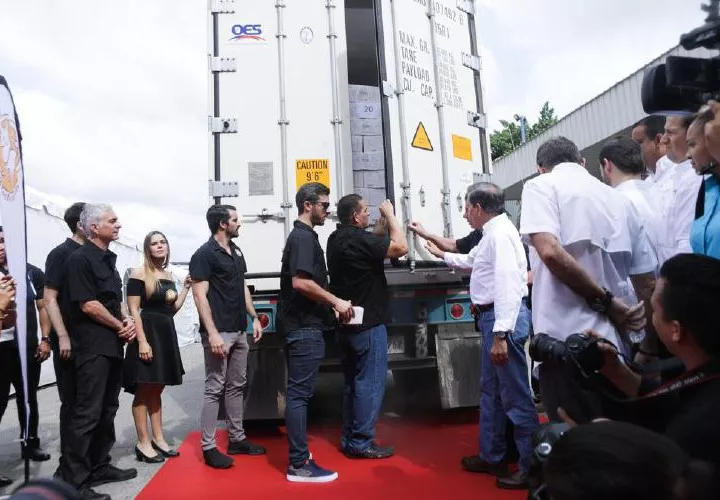 El presidente de Panamá, Laurentino Cortizo participó en el acto en el cual la empresa Fortunato Mangravita, despachó su primera exportación con destino a Shanghái, China, consistente en 23 toneladas métricas de carne de res congelada.