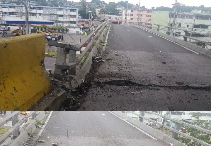 Al parecer fue un vehículo de una empresa vinculada a la construcción de la Línea 2 del Metro, el que ocasionó los daños a la estructura del puente. Los autobuses y autos particulares deberán subir hasta la Roosevelt para ingresar a las zonas internas de San Miguelito.