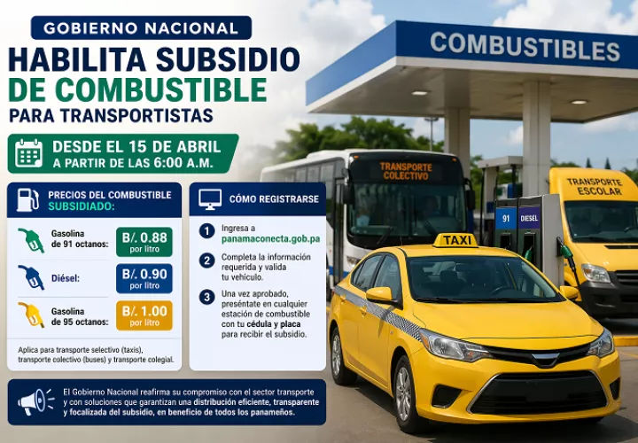 Como parte de la implementación del subsidio de combustible, se habilitó el proceso de registro en la plataforma digital Panamá Conecta, donde ya se han inscrito cientos de unidades entre taxis, buses y transporte colegial, según la información oficial.
