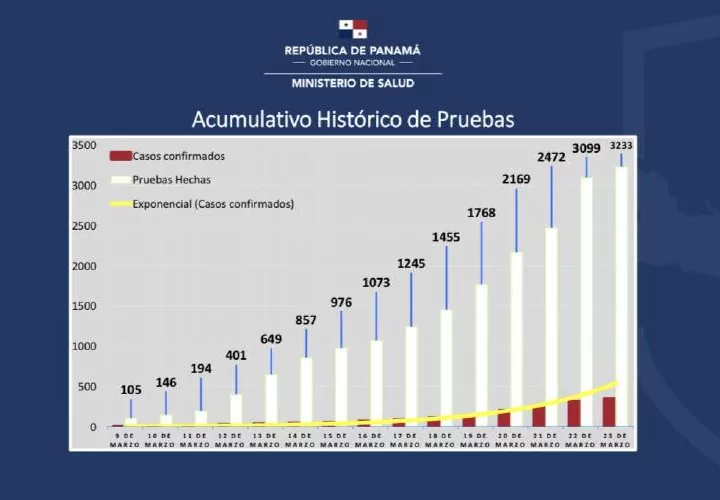 A casi dos semanas de identificado el primer caso en el país, Panamá ha conseguido aplicar 3,233 pruebas de COVID-19 (23 de marzo 2020), un promedio de 230 diarias que las autoridades esperan poder multiplicar.