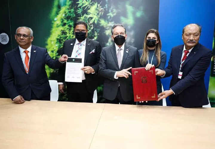 El presidente Laurentino Cortizo fue testigo de honor del acto de firma de la “Declaración de Países Carbono Negativo” por parte de los cancilleres de Panamá, Bután y Surinam, quienes solicitaron “un mayor esfuerzo y ambición global para lograr los compromisos asumidos en el Acuerdo de París, en particular para limitar el aumento de la temperatura media global a 1,5° C, por debajo de los niveles preindustriales”.