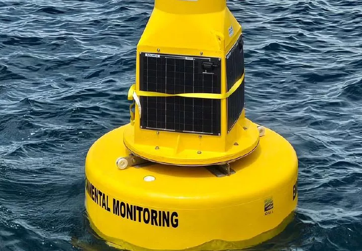 La boya, equipada con tecnología de vanguardia, cuenta con dos sondas multiparamétricas capaces de medir hasta 20 variables ambientales, incluyendo temperatura, salinidad, concentración de oxígeno, pH, clorofila A y velocidad del sonido.