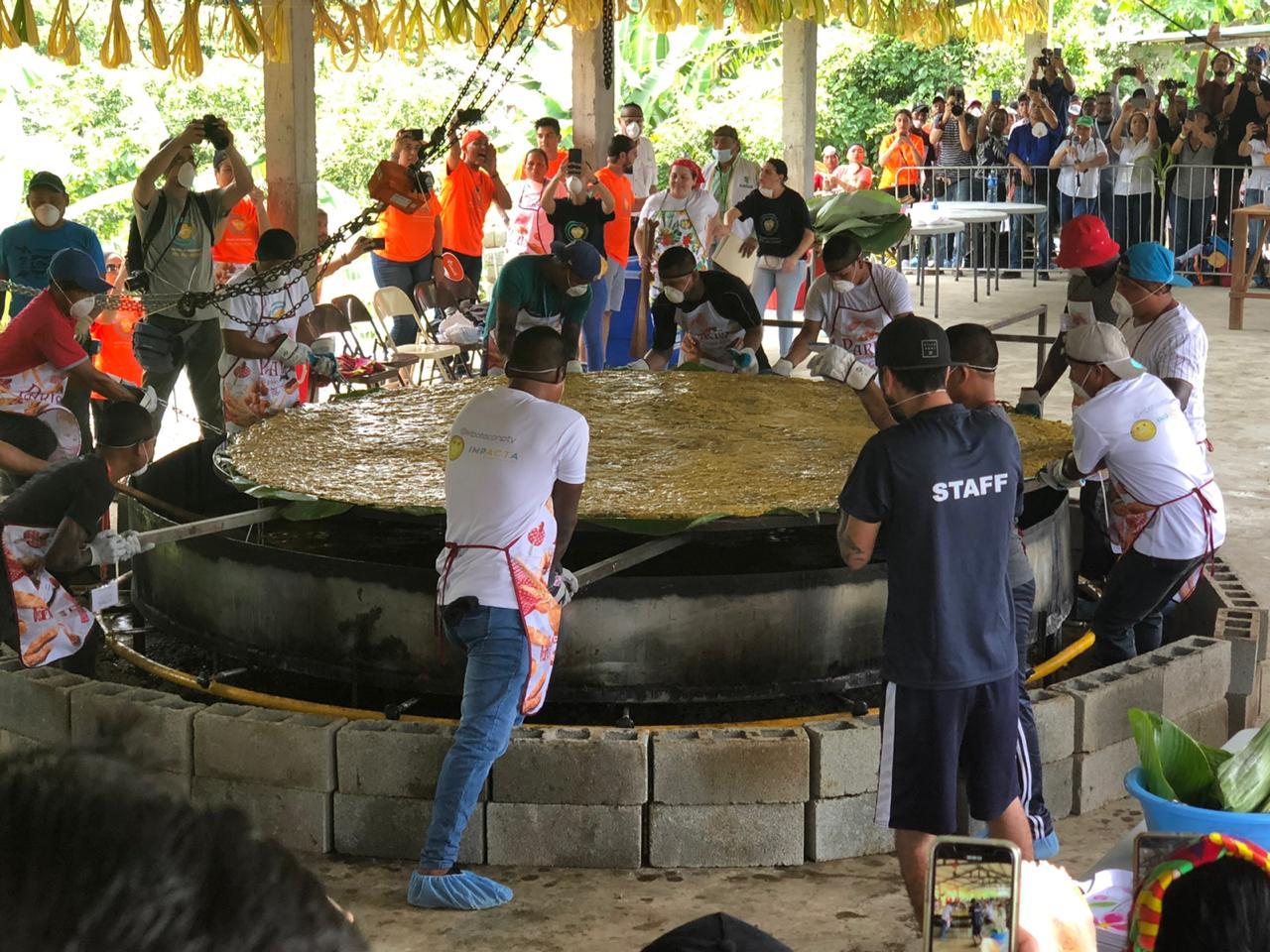 Para su elaboración, se emplearon 1,200 plátanos, 1,250 litros de aceite. Participaron en la preparación, 134 personas de la comunidad indígena en todo el proceso, quienes fueron dirigidos por Impacta, y por dos chefs reconocidas, chef panameña, Rachel Pol Policart y Oriana Bekerman.