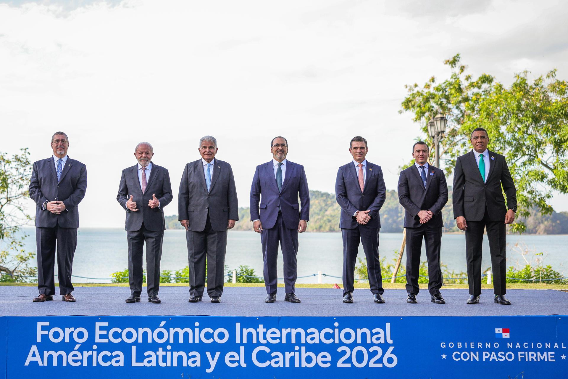 En el foro participan el presidente de Panamá, José Raúl Mulino, junto a Luiz Inácio Lula da Silva de Brasil, Bernardo Arévalo de Guatemala, Daniel Noboa de Ecuador, Rodrigo Paz de Bolivia y el primer ministro de Jamaica, Andrew Holness.
