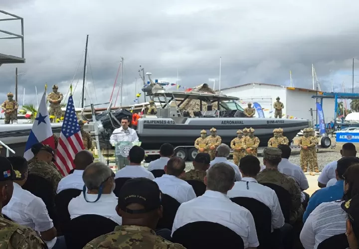 En su discurso Cabrera destacó que “hoy entregamos dos lanchas interceptoras marítimas Safeboat de 41 pies para fortalecer la lucha de Panamá contra los narcotraficantes y las organizaciones criminales transnacionales”.