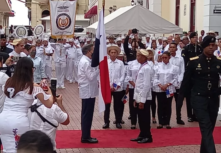 Los honores a la Bandera, el Escudo y el Himno Nacional se iniciaron a las 7:00 a.m. con el juramento a la Bandera por parte de la Asociación de las Muchachas Guías de Panamá, y continuó con la izada por parte del mandario Cortizo, en compañía del vicepresidente de la República y ministro de la Presidencia, José Gabriel Carrizo, y del abanderado de la fecha, Santana Trujillo Visuete.