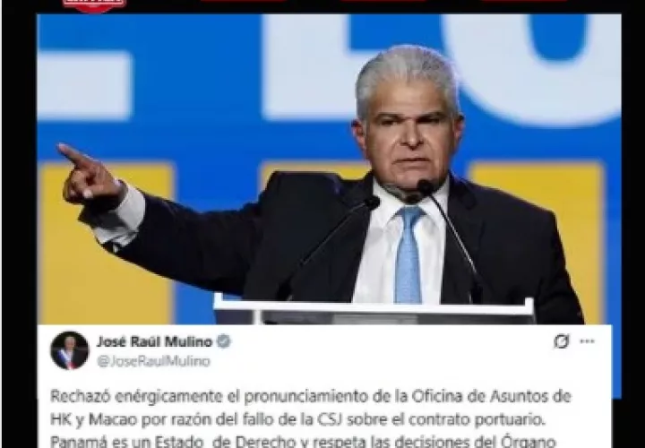 "Rechazó enérgicamente el pronunciamiento de la Oficina de Asuntos de HK y Macao por razón del fallo de la CSJ sobre el contrato portuario. Panamá es un Estado de Derecho y respeta las decisiones del Órgano Judicial que es independiente al Gobierno Central", escribió en X Mulino.