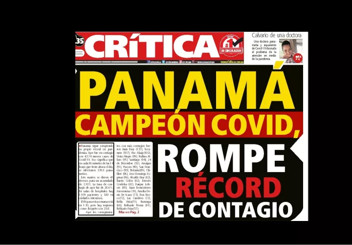 Panamá sigue rompiendo su récord en pandemia. Ayer fue en contagio, con 4,574 nuevos casos de Covid-19, y se dieron 41 decesos para un acumulado de 3,933.