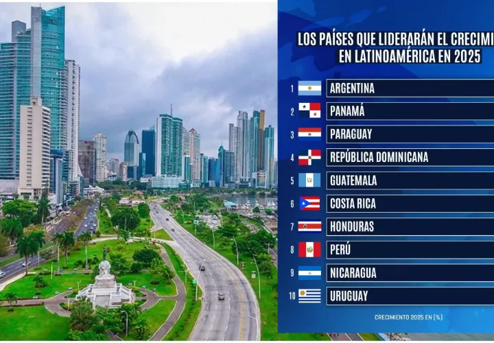 En lo que respecta a Latinoamérica, Argentina encabeza el crecimiento económico con un 5%, seguido de Panamá con 4,2%, Paraguay con 4%, República Dominicana con 3.7%, y Guatemala con 3.6%.