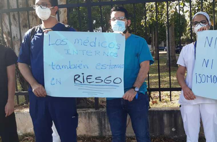 Ayer tarde los médicos residentes e internos del hospital Santo Tomás realizaron una protesta para reclamar la vacuna para el personal que está atendiendo pacientes con coronavirus que a la fecha no habían recibido la dosis de Pfizer.