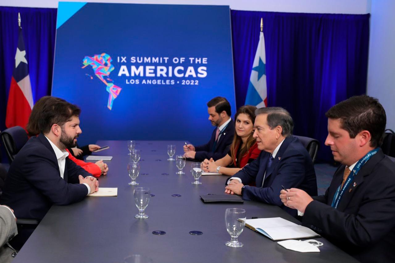 Panamá- El presidente de la República, Laurentino Cortizo Cohen, sostuvo un encuentro bilateral con el mandatario de Chile, Gabriel Boric, en el marco de la IX Cumbre de las Américas en Los Ángeles, Estados Unidos, con quien conversó sobre las fraternas y excelentes relaciones diplomáticas que existen entre ambas naciones.