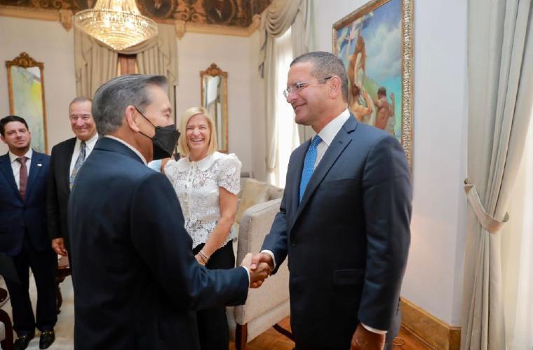 El presidente Laurentino Cortizo recibió al gobernador de Puerto Rico, Pedro Rafael Pierluisi Urrutia, para conversar sobre la relación entre ambos países y el interés en fortalecer las relaciones y la cooperación comercial y también sobre las buenas prácticas que se manejan en el uso de energías limpias. En la reunión estuvo presente Manuel Cidre, Secretario de Desarrollo Económico.