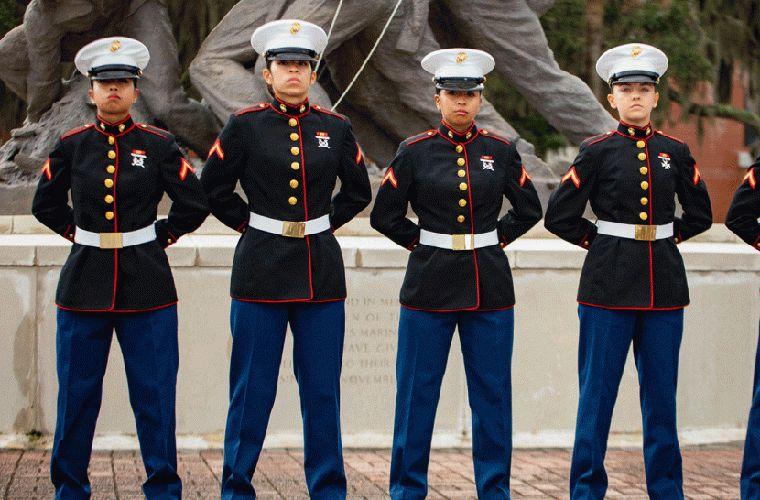 Las cinco mujeres posaron juntas para las fotos que MCRD Parris Island publicó en su página de Facebook.