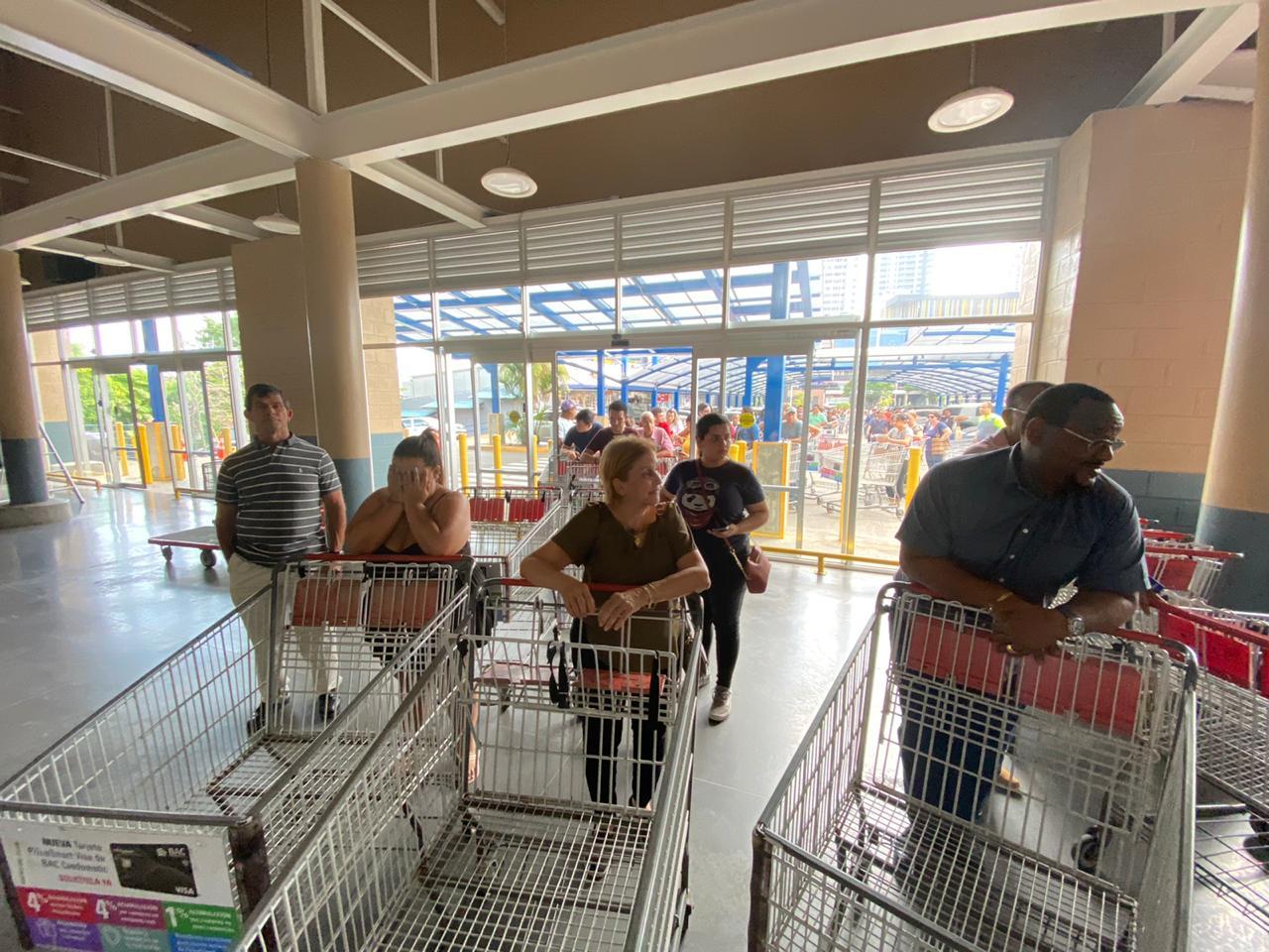 Los clientes que desde temprano hicieron largas fila en espera de la apertura de grandes tiendas como PriceSmart, se abastecían de gel alcoholado, mascarillas, jabón antibacterial: