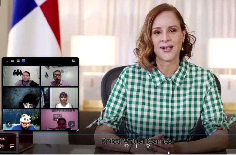 La Primera Dama de Panamá, Yazmín Colón de Cortizo, en sus palabras de inauguración, felicitó a los estudiantes, y señaló que estas olimpiadas “se han unido a la transformación virtual para que, desde la plataforma Robot Virtual Games, creada en Panamá, niños de todo el mundo puedan reunirse a compartir y competir en sano esparcimiento educativo.