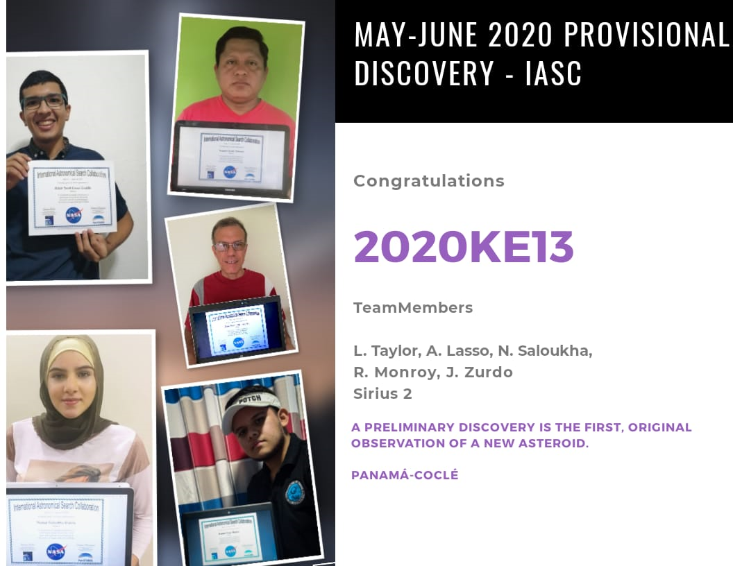 Un grupo de panameños aficionados a la astronomía descubrió un potencial nuevo asteroide. Este descubrimiento ocurrió el año pasado y actualmente está en una fase provisional, que puede tardar aproximadamente entre cuatro y siete años, mientras se registran suficientes observaciones para determinar completamente su órbita y comprobar que, en efecto, se trata de un nuevo asteroide. Posteriormente, podría ser nombrado por sus descubridores, numerado y catalogado por la Unión Astronómica Internacional (IAU, por sus siglas en inglés).