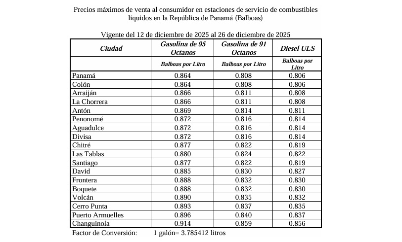 Panamá- El precio de los combustibles bajará este próximo viernes 12 de diciembre, según confirmó la Secretaría de Energía de Panamá.
