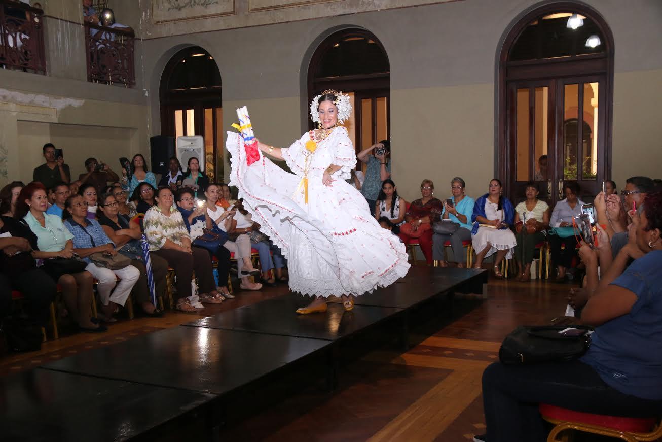 Más de 20 empolleradas participaron de una pasarela didáctica organizada por el Ministerio de Gobierno a través de la Academia de Gobierno y las Damas de la Pollera, como parte de un ciclo de conferencias denominada “La Pollera, traje típico de la mujer panameña”.