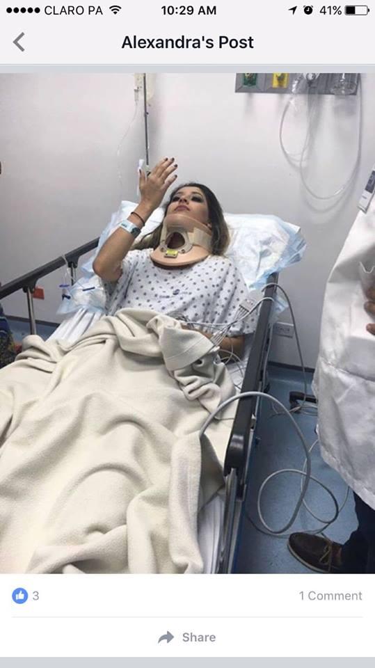 La versión de Margie Gómez es que su exnovio la atacó con un bate y le causó múltiples heridas y fracturas que la dejaron en el hospital. Fotos en las redes sociales la muestran con cuello ortopédico.