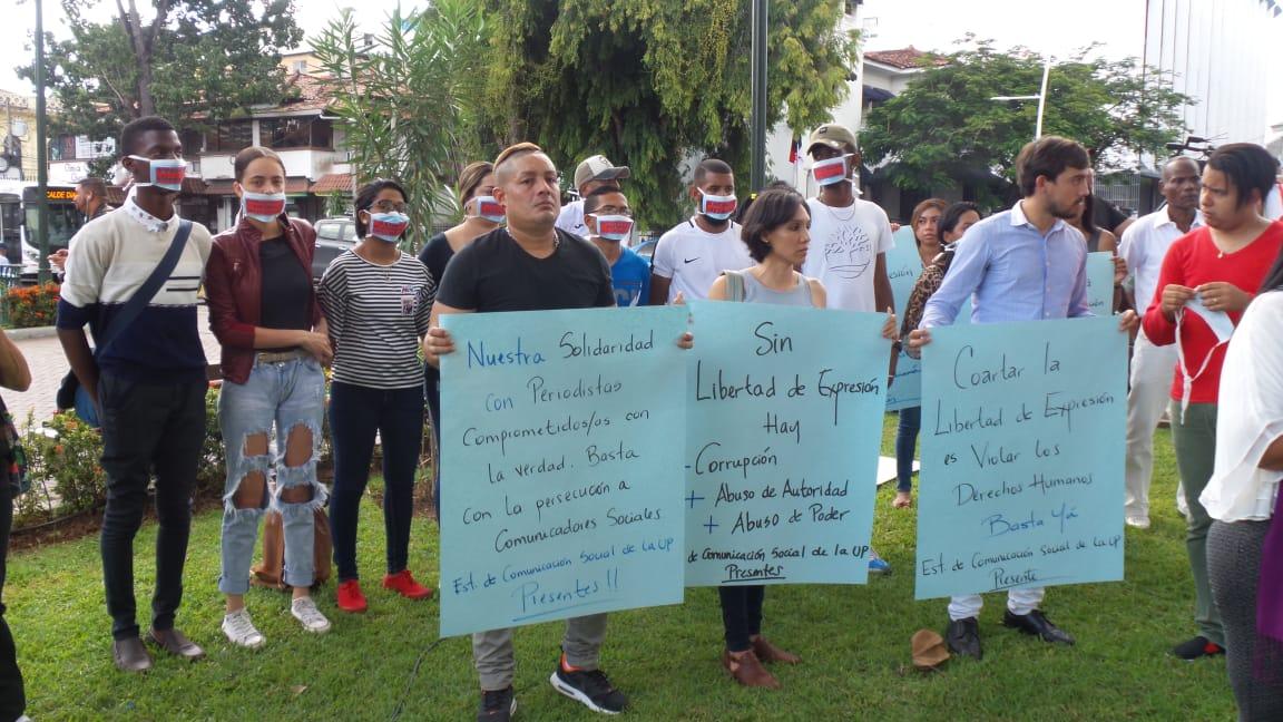 Panamá- Comunicadores sociales participan hoy, miércoles, de una concentración en el parque Porras por el libre ejercicio de la profesión y en defensa de la libertad de expresión.