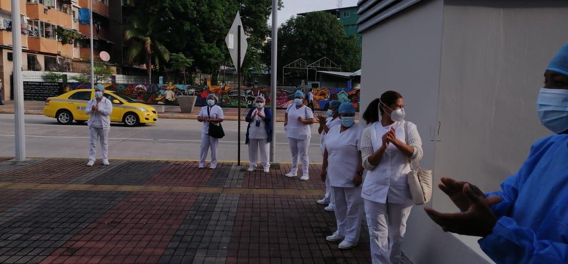 Un grupo de trabajadores de aseo (mantenimiento) se manifiestaron esta mañana en los alrededores del complejo hospitalario, vía Transístmica, para rechazar la intención de privatizar este servicio, pero además exigen mejoras condiciones en medio de la pandemia de Covid-19.