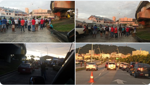 Miembros de la Asociación de Pescadores Artesanales de Oeste cerraron hoy momentáneamente la avenida Balboa, a la altura del Mercado de Mariscos.
