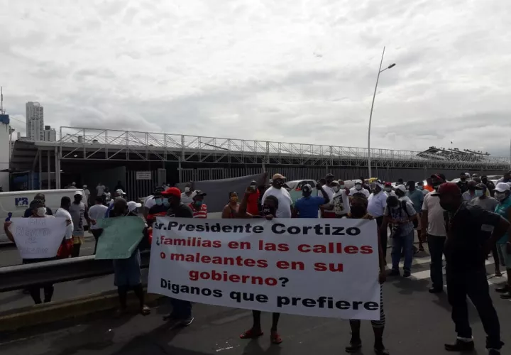 Un grupo de pescadores protestaron hoy, jueves, en los alrededores del Mercado de Mariscos, ubicado en la avenida Balboa.