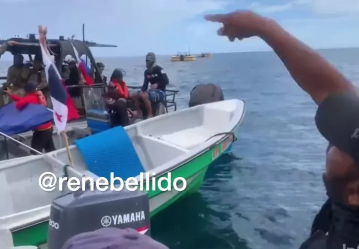 Un grupo de manifestantes con pequeñas embarcaciones y personal del Servicio Nacional Aeronaval (SENAN) se enfrentaron ayer cuando un buque escoltado por las autoridades intentaba atracar en el puerto de Minera Panamá, filial de la empresa canadiense First Quantum Minerals (FQM).