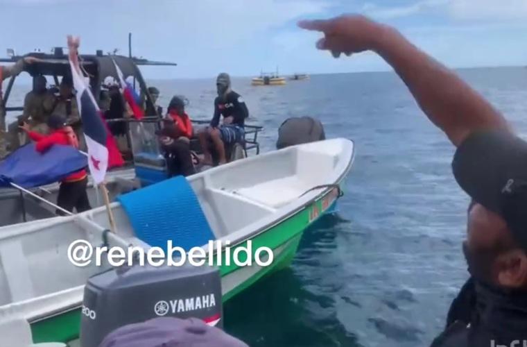 Un grupo de manifestantes con pequeñas embarcaciones y personal del Servicio Nacional Aeronaval (SENAN) se enfrentaron ayer cuando un buque escoltado por las autoridades intentaba atracar en el puerto de Minera Panamá, filial de la empresa canadiense First Quantum Minerals (FQM).