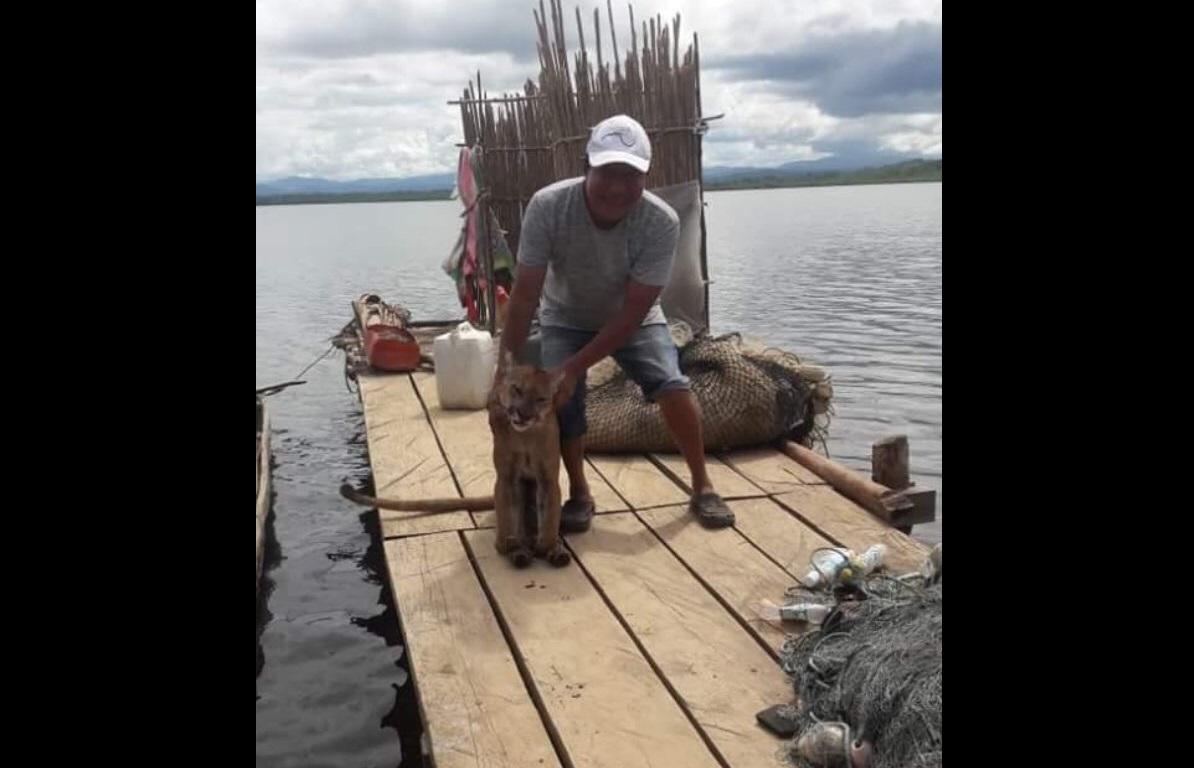 El Ministerio de Ambiente está solicitando a la ciudadanía su colaboración para ubicar a un puma o a su presunto captor, los cuales aparecen en una fotografía.