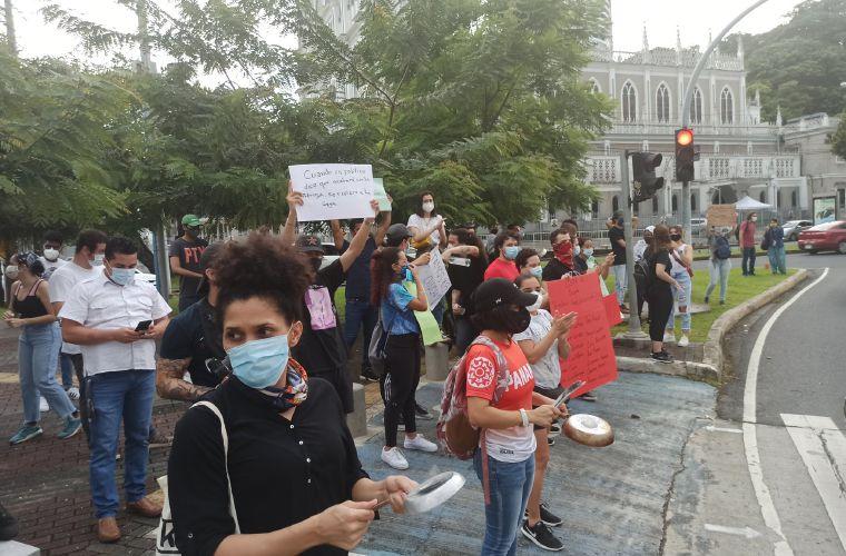 Un grupo de jóvenes protestaron ayer en las aceras de la vía España frente a la estación del Metro de la iglesia del Carmen, para reclamar el fin al confinamiento por la pandemia del coronavirus.